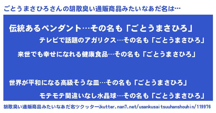 | ヘコむあだ名 | 『ごとうまさひろ(苦笑)』『ごとっちょ』 |