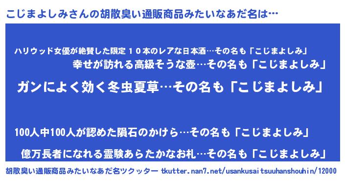 | 意味不明あだ名 | 『自称こじまよしみ』 |