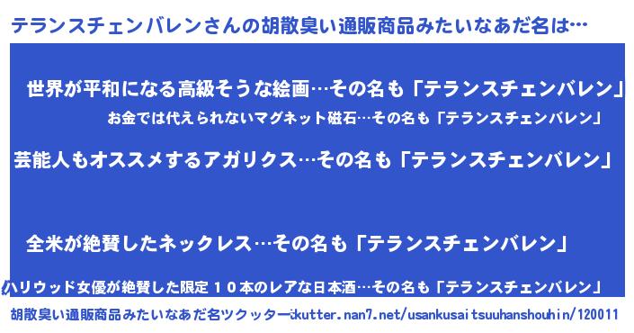 | 意味不明あだ名 | 『自称テランスチェンバレン』 |