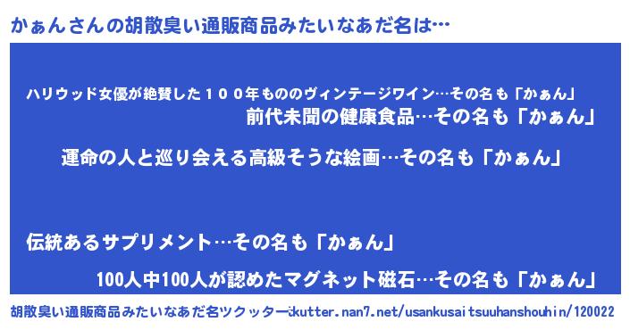 | 意味不明あだ名 | 『かぁんフォーエバー』『永久保存かぁん』 |