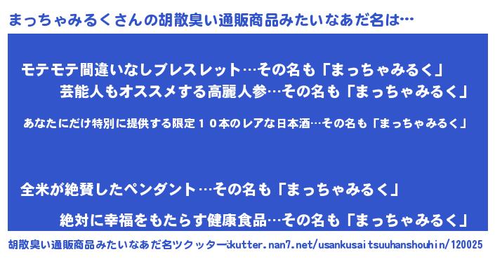 | ヘコむあだ名 | 『まっふぇ~』『まっちゃみるく(小並感)』 |