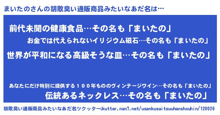 | 意味不明あだ名 | 『まいたのフォーエバー』 |