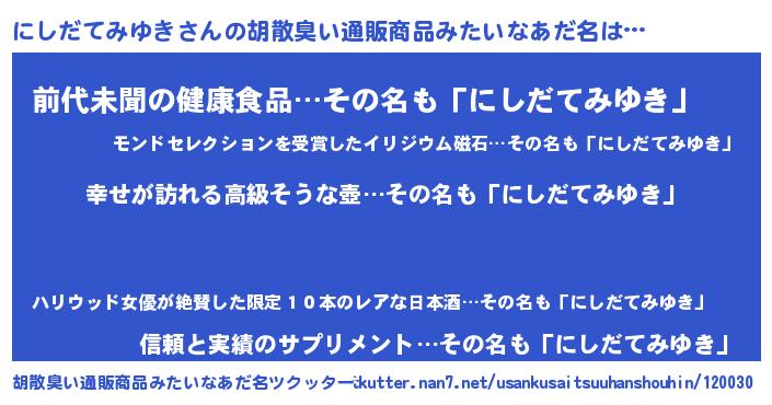 | 肩書あだ名 | 『にしだてみゆき大統領』 |