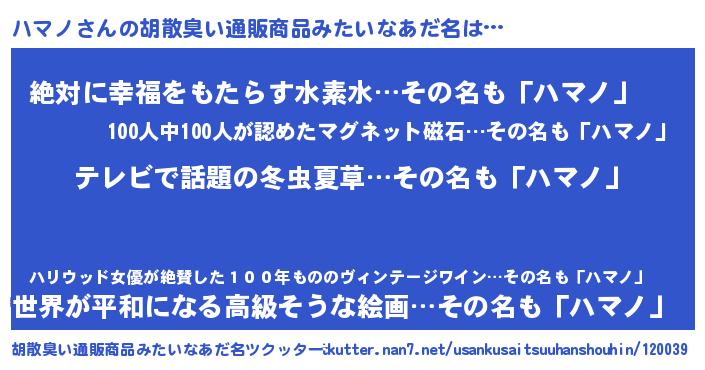 | 意味不明あだ名 | 『自称ハマノ』『永久保存ハマノ』 |