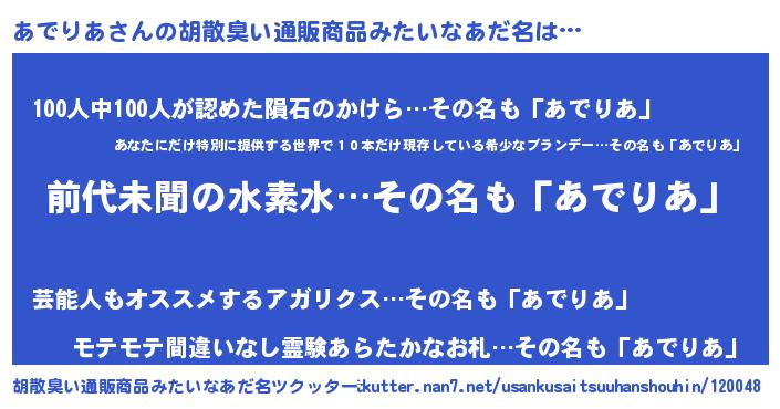 | 意味不明あだ名 | 『永久保存あでりあ』『ペロリンあでりあ』 |