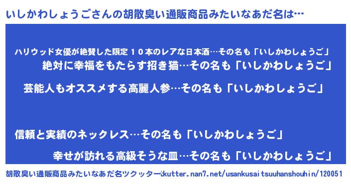 | 意味不明あだ名 | 『自称いしかわしょうご』 |