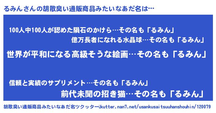 | 男性向けラノベタイトル風あだ名 | 『転生したらるみんだった件』 |