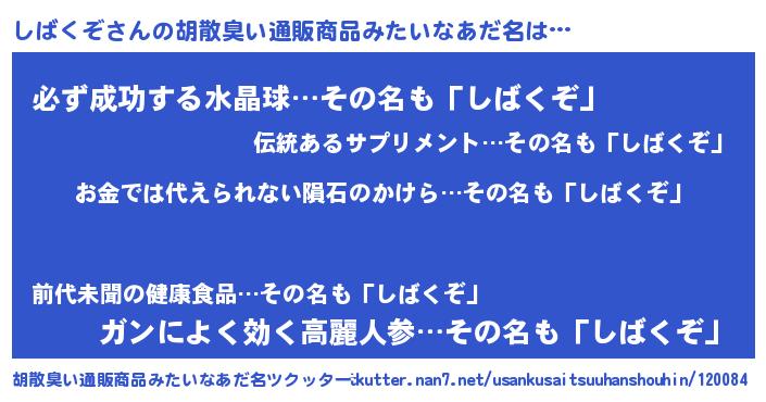 | 女子向けラノベタイトル風あだ名 | 『しばくぞ恋絵巻』『闇のしばくぞ』 |