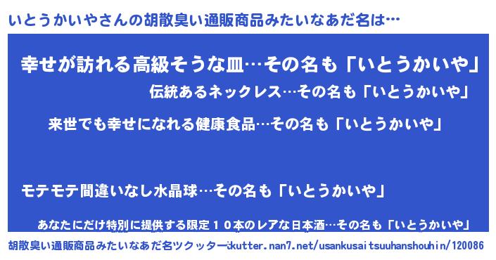| 意味不明あだ名 | 『永久保存いとうかいや』 |