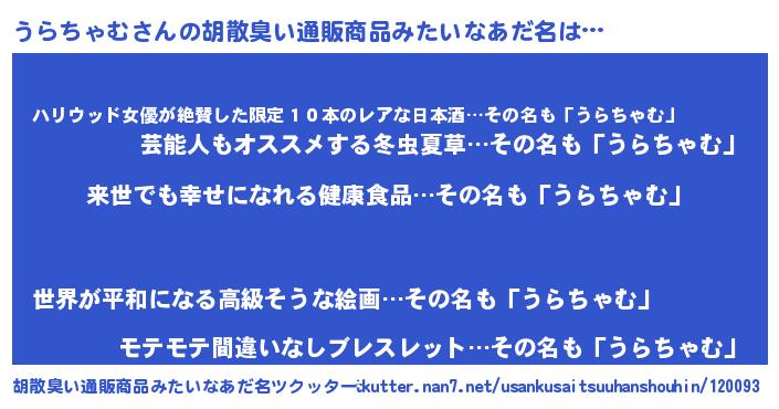 | 意味不明あだ名 | 『永久保存うらちゃむ』『自称うらちゃむ』 |