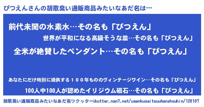 | 意味不明あだ名 | 『とにかく怪しいぴつえん』 |