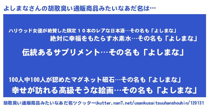 | 意味不明あだ名 | 『とにかく怪しいよしまな』 |