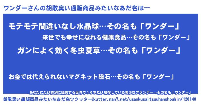 | 女子向けラノベタイトル風あだ名 | 『ワンダーなんてお断りですっ。』 |