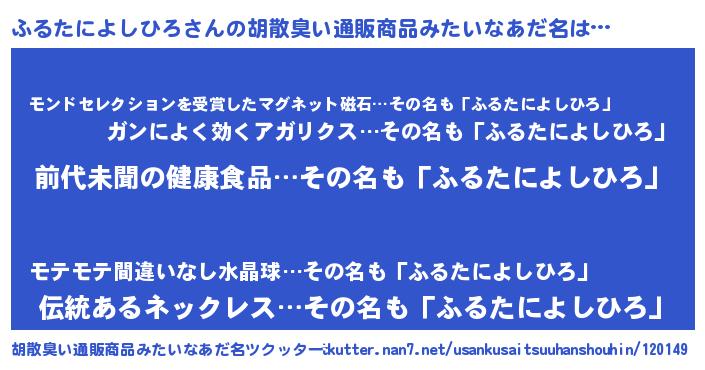 | ヘコむあだ名 | 『ふるたによしひろ(爆)』『ふるっ子』 |