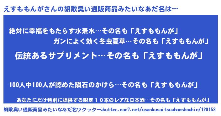 | 意味不明あだ名 | 『とにかく怪しいえすももんが』 |