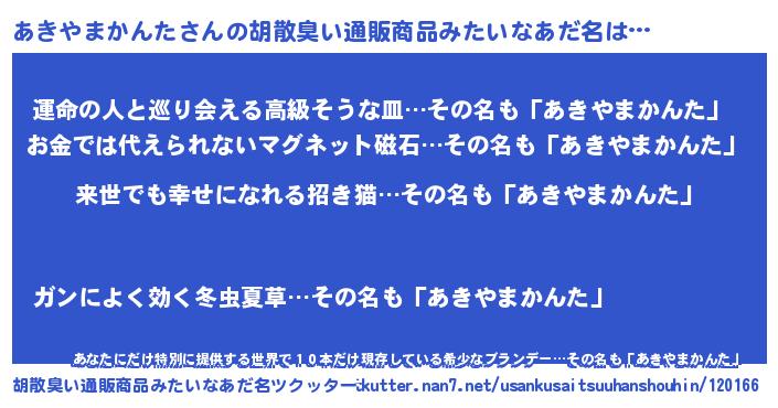 | 意味不明あだ名 | 『永久保存あきやまかんた』 |