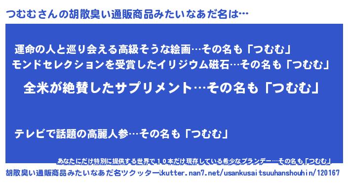 | ヘコむあだ名 | 『つむお』『なまこ酢』『つむむ(笑)』 |