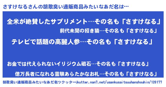 | ヒーロー風カッコイイあだ名 | 『サイバー戦士サスケナル』 |