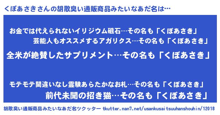 | 意味不明あだ名 | 『とにかく怪しいくぼあさき』 |