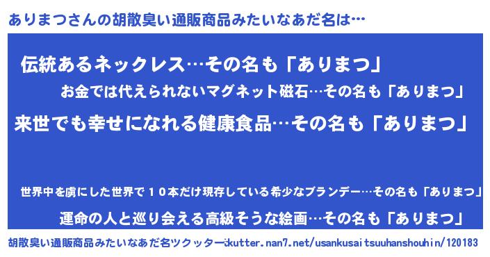 | 女子向けラノベタイトル風あだ名 | 『ありまつの契約王妃』『ありまつ恋絵巻』 |