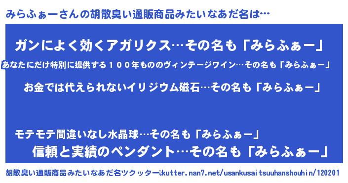 | ヘコむあだ名 | 『みらっぺ』『みらふぇ~』 |