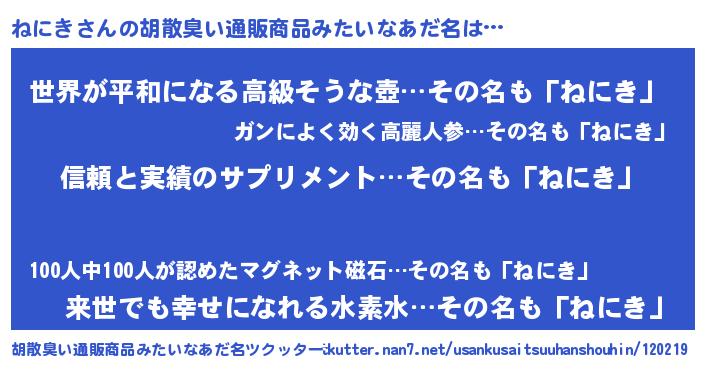 | 肩書あだ名 | 『ねにき船長』『ねにきディレクター』 |