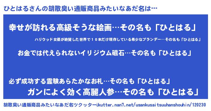 | ヒーロー風カッコイイあだ名 | 『愛の使者ひとはる』『仮面ヒトダー』 |