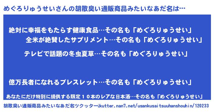 | 意味不明あだ名 | 『自称めぐろりゅうせい』 |