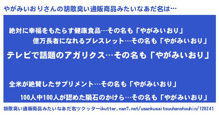 | 肩書あだ名 | 『やがみいおり総統』『やがみいおり校長』 |