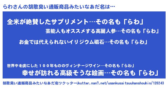| ヒーロー風カッコイイあだ名 | 『慈愛の使者らわ』『幻影騎士ラワ』 |