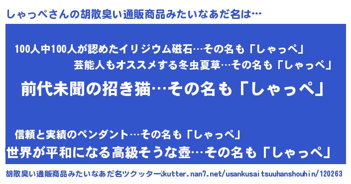 | 意味不明あだ名 | 『永久保存しゃっぺ』『自称しゃっぺ』 |