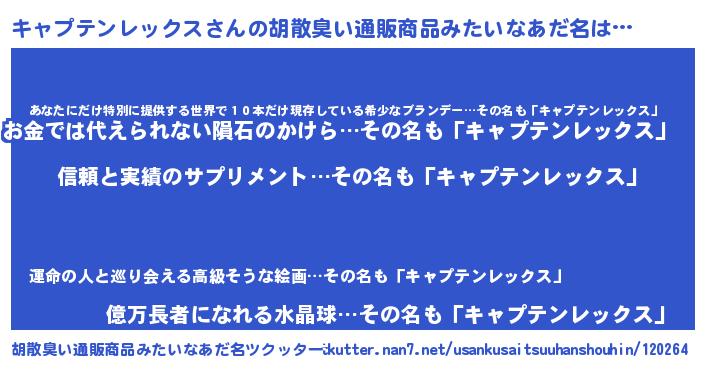 | 意味不明あだ名 | 『とにかく怪しいキャプテンレックス』 |