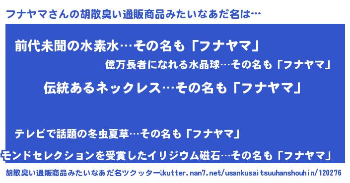 | ヘコむあだ名 | 『フナっぺ』『フナヤマ(遠い目)』 |