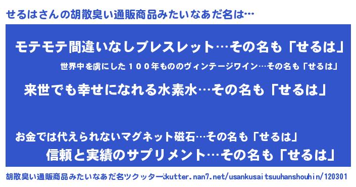 | ヘコむあだ名 | 『せるは(遠い目)』『せるにー』 |