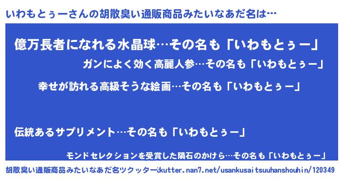 | ヘコむあだ名 | 『つくし』『いわにー』『いわっぺ』 |
