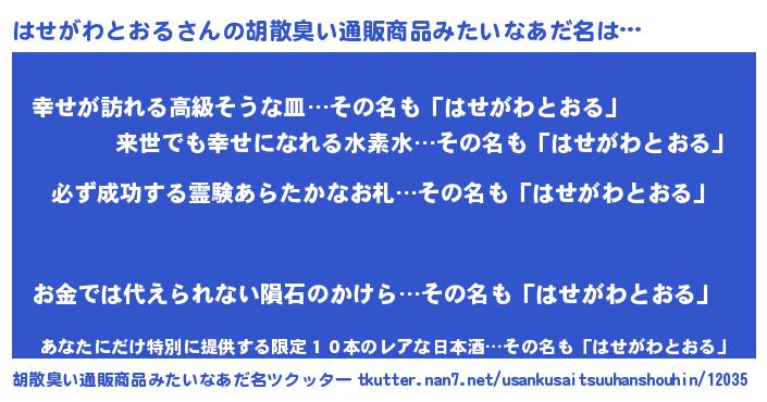 | 2回繰り返すあだ名 | 『はせはせ』『ははせせ』『せかせか』 |