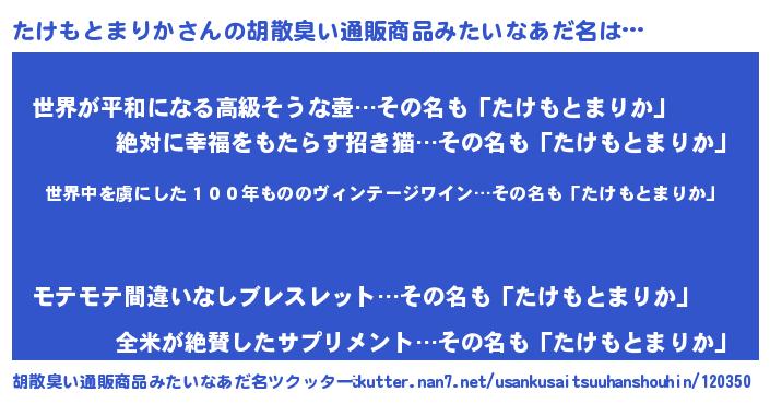 | 意味不明あだ名 | 『住所不定無職たけもとまりか(6歳)』 |