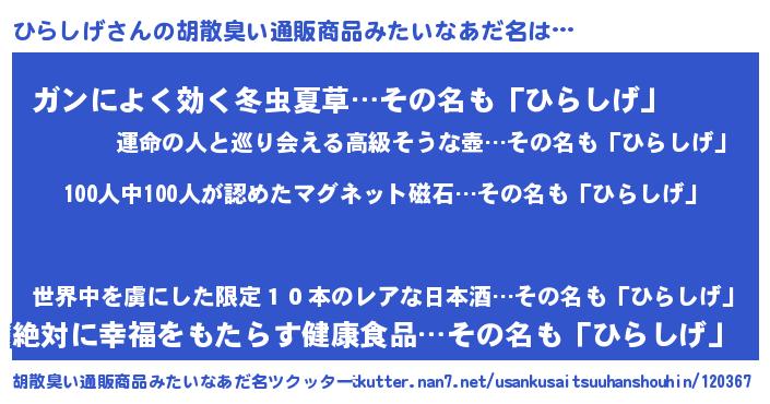 | ヒーロー風カッコイイあだ名 | 『正義の使者ひらしげ』『ネオヒラシゲ』 |