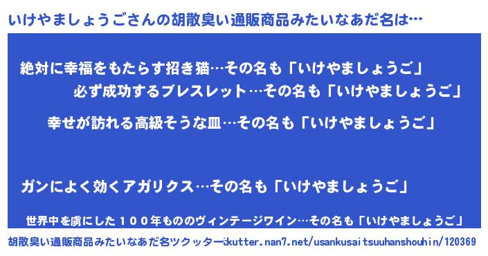 | 意味不明あだ名 | 『いけやましょうごフォーエバー』 |