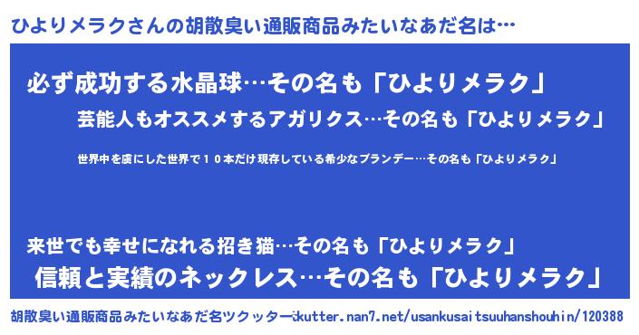 | 欧米人風あだ名 | 『ひよりメラク・ステッグマイヤー』 |