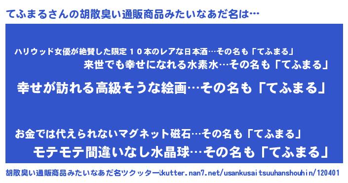 | 意味不明あだ名 | 『てふまるフォーエバー』 |