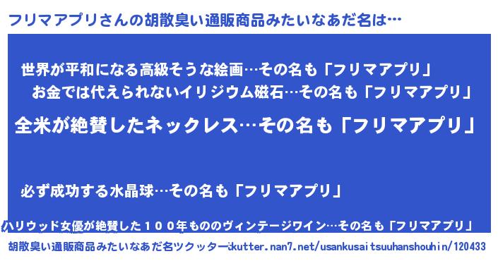 | 意味不明あだ名 | 『とにかく怪しいフリマアプリ』 |