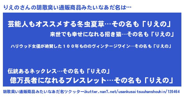 | 意味不明あだ名 | 『住所不定無職りえの(9歳)』『自称りえの』 |