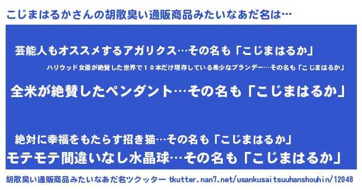 | 男性向けラノベタイトル風あだ名 | 『こじまはるかの嫁は女の子じゃないと思った?』 |