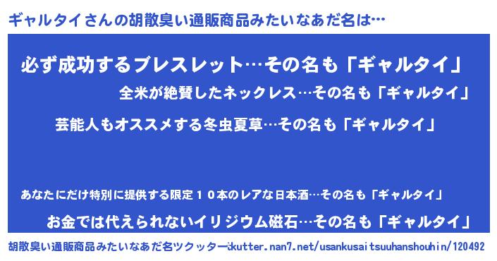 | ヒーロー風カッコイイあだ名 | 『究極戦士ギャルタイ』『幻影騎士ギャ』 |