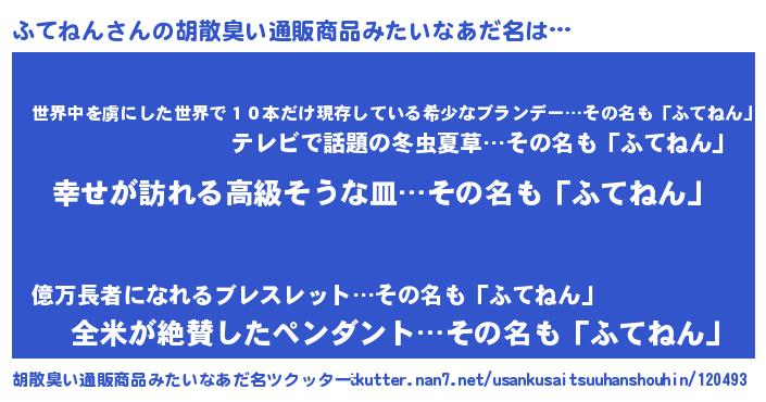 | 男性向けラノベタイトル風あだ名 | 『やはりふてねんの青春ラブコメはまちがっている 』 |