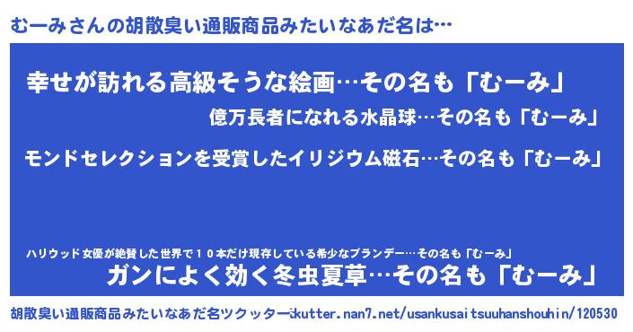 | 意味不明あだ名 | 『眠気覚ましガムむーみ味』『自称むーみ』 |