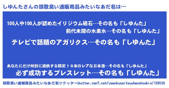 | ヘコむあだ名 | 『しゆにゅー』『しゆんた(笑)』 |