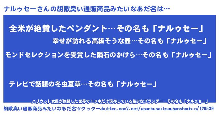 ナルゥセーさんの胡散臭い通販商品みたいなあだ名をツクッター!