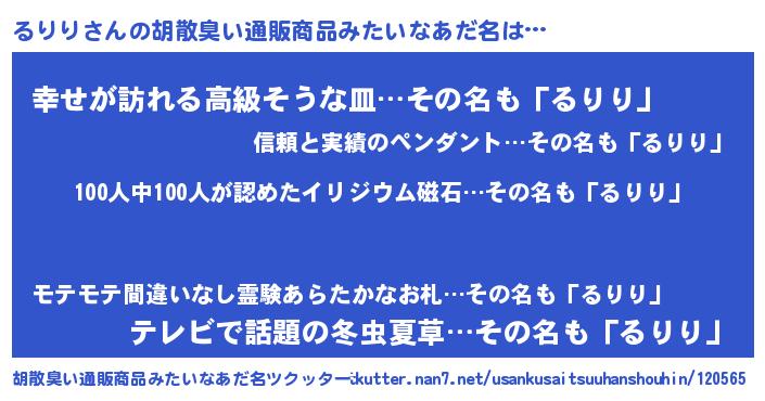 | 意味不明あだ名 | 『眠気覚ましガムるりり味』『自称るりり』 |